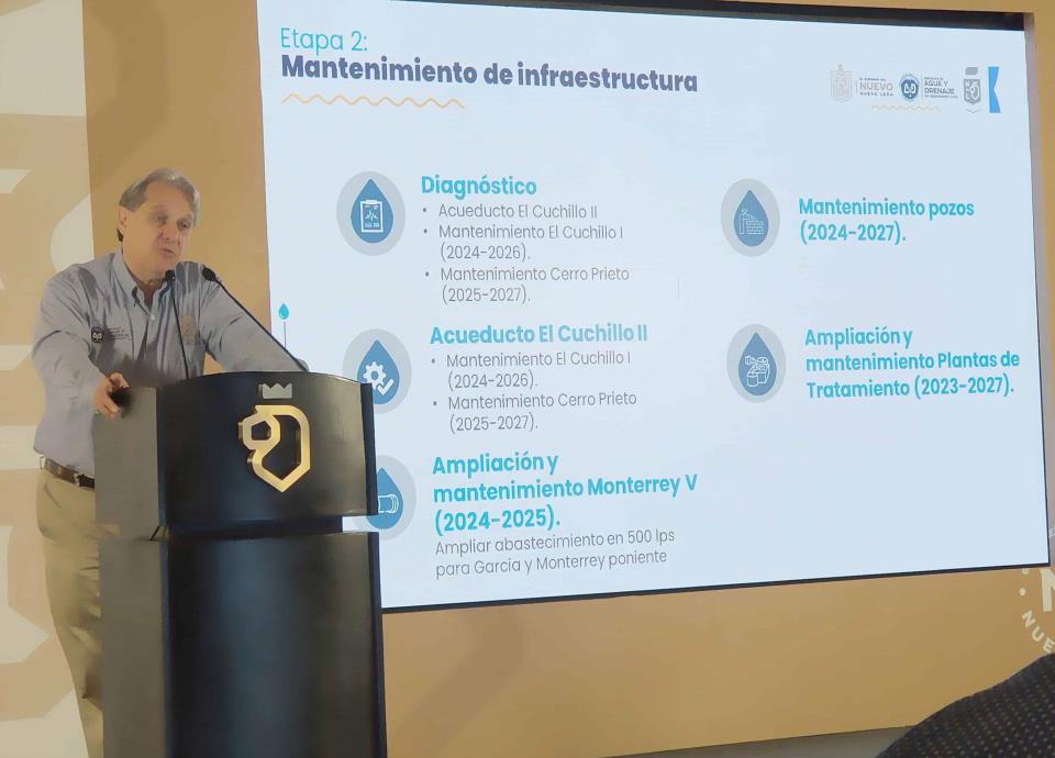 Adelantó también que del 2024 al 2025 se ampliará el Anillo Monterrey V, con el cual se busca agregar un caudal de 500 litros por segundo para García y Monterrey Poniente.