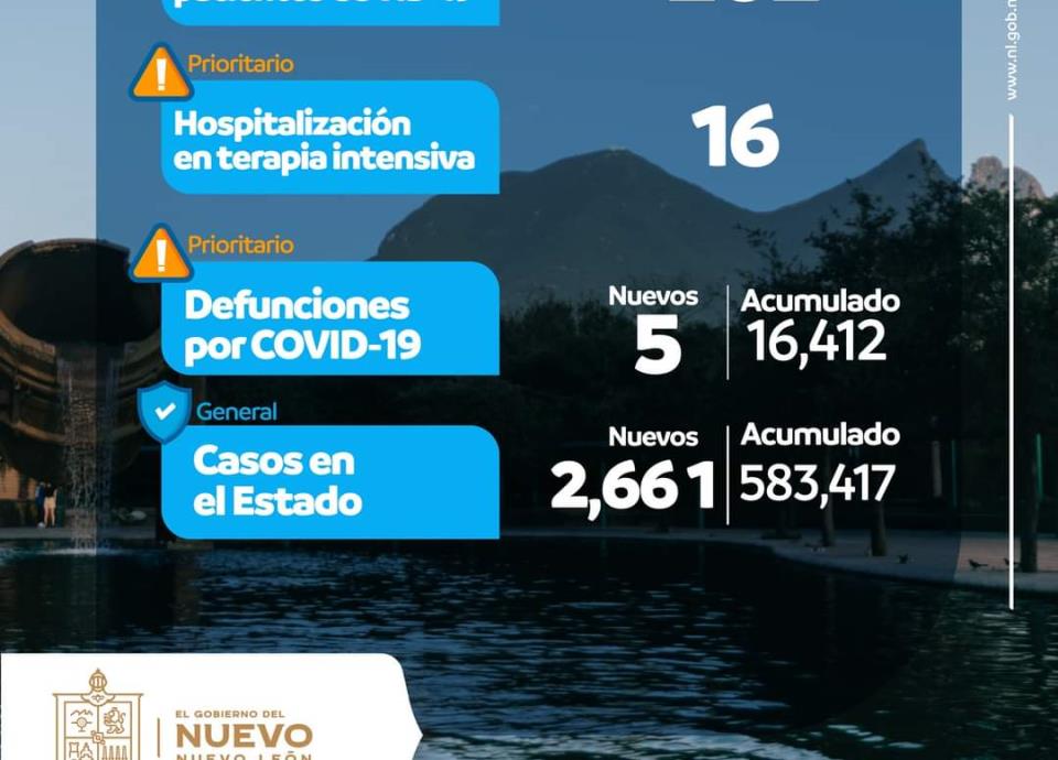 Reporta NL 2 mil 661 casos nuevos de Covid-19