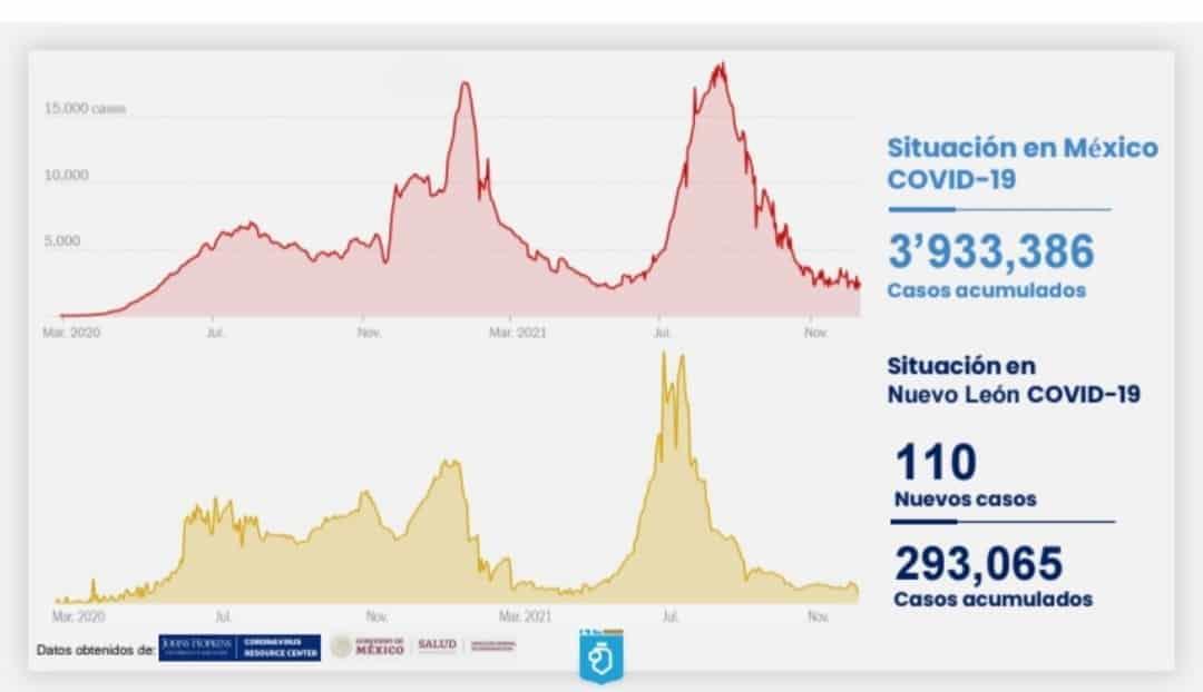 Nuevo León reportó a la baja las estadísticas en el último reporte de la Secretaría de Educación que indica que se registraron 110 casos de Covid-19, tres defunciones y 266 hospitalizaciones.