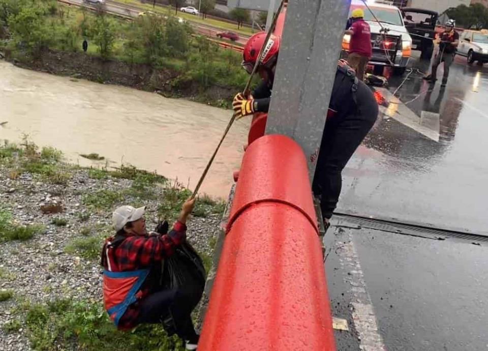 Dos hombres fueron rescatados del cauce del Rio Santa Catarina por elementos de Protección Civil la mañana de este martes.
