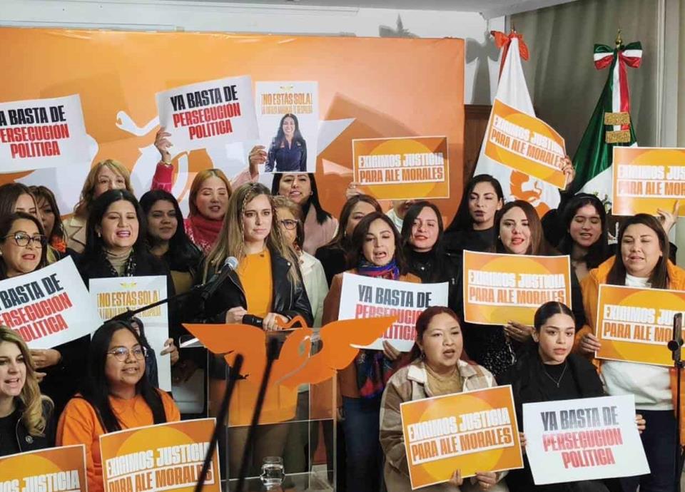 Mujeres integrantes del Partido Movimiento Ciudadano Nuevo León, lanzaron un pronunciamiento para externar su respaldo a Alejandra Morales, quien señalaron enfrenta "una clara persecución política orquestada por el PRI y el PAN".