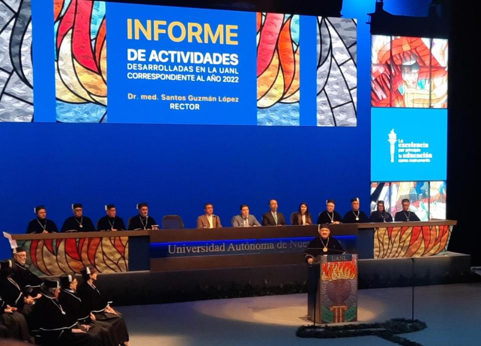 La actualización del Plan de Desarrollo Institucional, la ampliación de la oferta académica, el fortalecimiento de la cultura y el deporte, y múltiples apoyos para que ningún alumno se quede sin poder continuar sus estudios, fueron los logros destacados por Santos Guzmán, el Rector de la Universidad Autónoma de Nuevo León, al rendir su primer informe de actividades correspondientes al periodo 2021-2022.