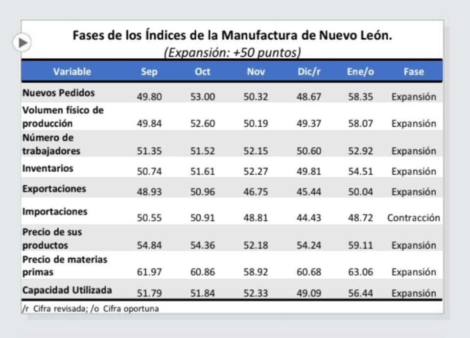 La industria de manufactura en Nuevo León presenta un avance significativo, debido a que prácticamente todos los indicadores muestran un incremento que se traduce en una aceleración de la actividad industrial.