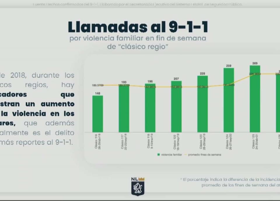 En la gráfica se aprecia que tras el Clásico 125, la línea de emergencia recibió 269 llamadas por violencia familiar, 14 por ciento arriba del promedio.