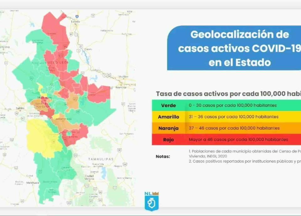 Entre las municipalidades en rojo están Monterrey, San Pedro y San Nicolás.