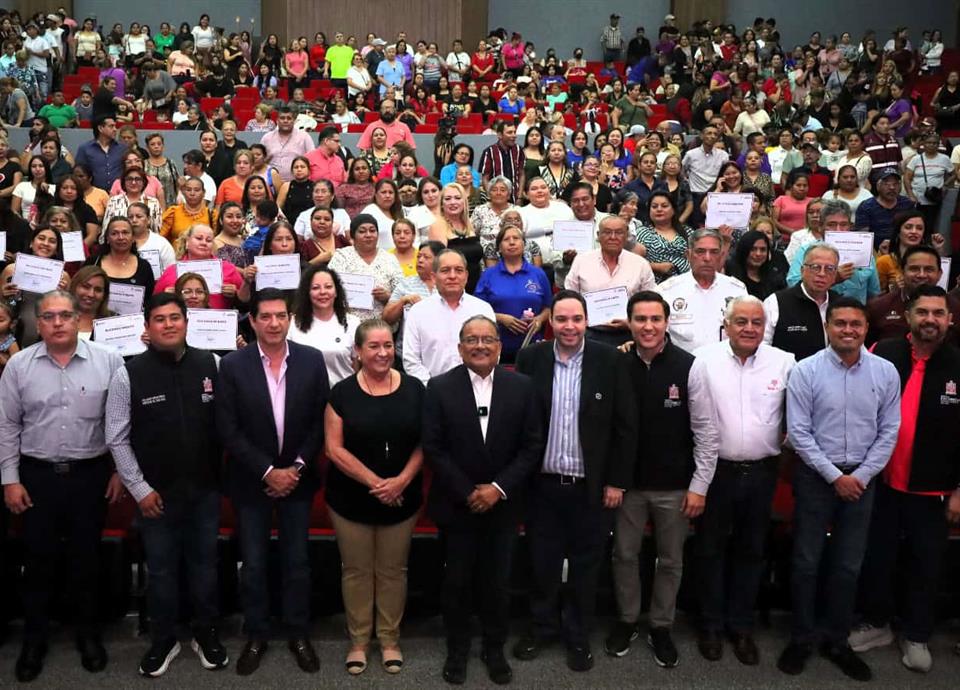 El Alcalde Andrés Mijes, junto a Kanna Fernández, Presidenta de Telar A.C., y el investigador Fernando Rixio Portillo, encabezaron la graduación de 340 ciudadanos que concluyeron con éxito los procesos formativos y hoy se convierten en transformadores norteños comprometidos con la paz social.