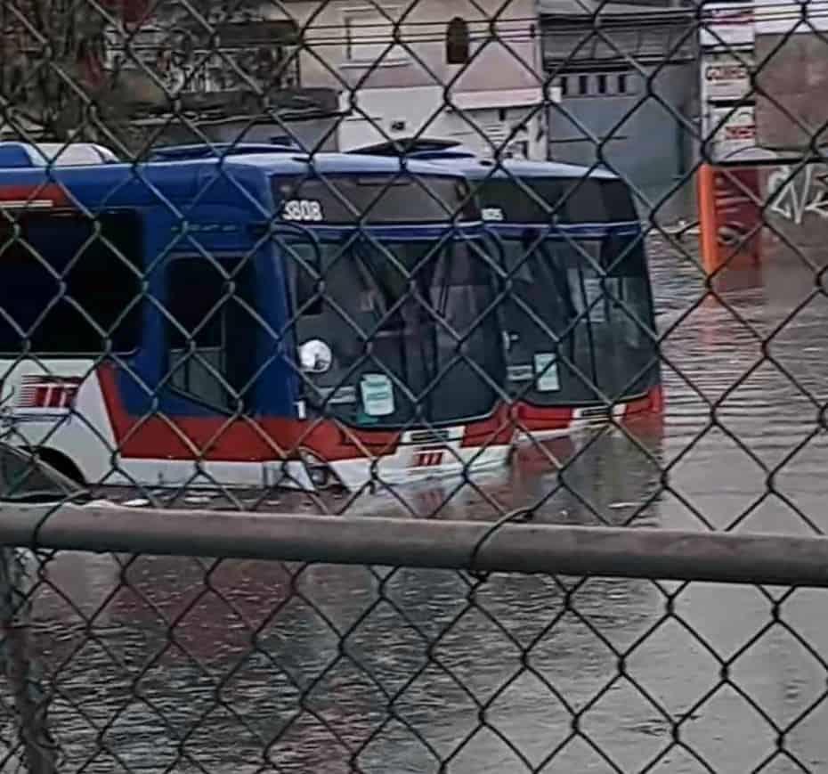 En el lugar, el nivel del agua sobrepasaba las llantas de las unidades de TransMetro,