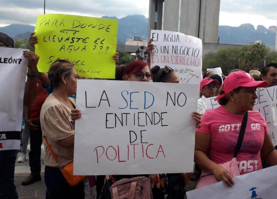 Más de mil personas se dieron cita en la Explanada de los Héroes, frente al Palacio de Gobierno, para manifestarse en contra de los reiterados cortes de agua, en el área metropolitana de Monterrey.