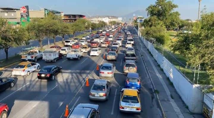 Y es que al ser la modalidad mixta de Drive Truh y peatonal el macro módulo de vacunación en el Estadio BBVA, ha ocasionado un fuerte tráfico vial.