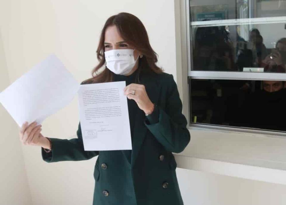 Por otro lado, Flores Carrales, realizó la entrega de un escrito ante la CEE, en el cual sus dos hijos la autorizan para acompañarla en sus actividades políticas.