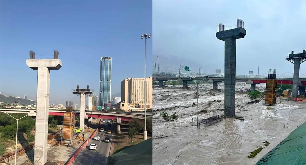 El paso de la tormenta tropical “Alberto” provocó el jueves el desbordamiento del Rio Santa Catarina en algunos puntos de la ciudad y el desgajamiento de los carriles express del Par Vial Constitución-Morones Prieto.