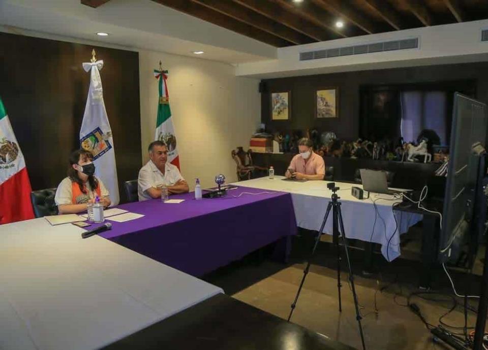 El gobernador dialogó de manera virtual con alcaldes de los 51 municipios de la entidad para compartirles el plan de reactivación escolar donde también estuvieronpresentes María de los Ángeles Errisúriz Alarcón, Secretaria de Educación, y Manuel de la O Cavazos, titular de Salud.