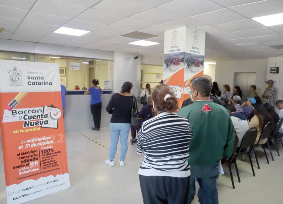 Es así que desde esta mitad de semana el Gobierno de Santa Catarina amplió la vigencia del programa “Borrón y Cuenta Nueva”, en el pago de Impuesto Predial hasta noviembre y diciembre del presente año, informó el Alcalde Jesús Nava Rivera.