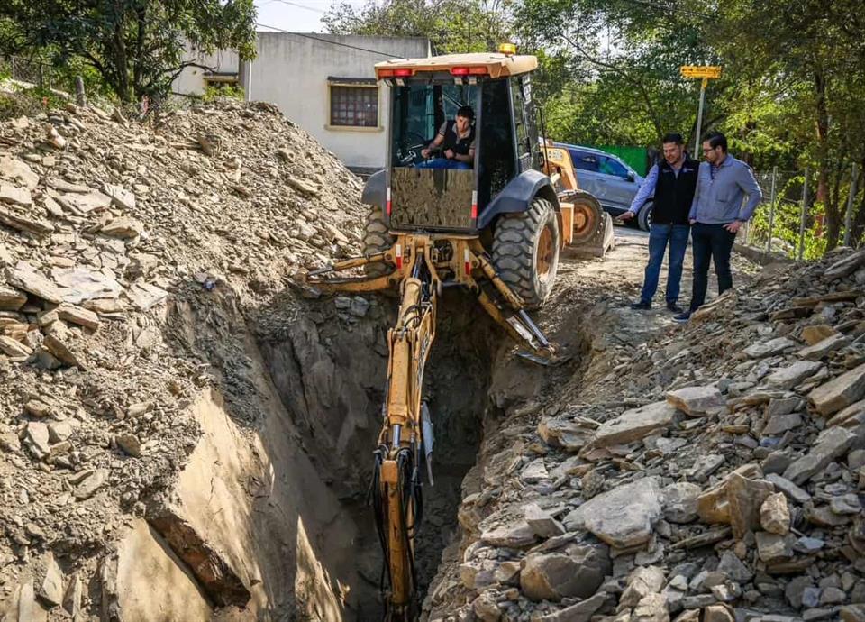 El alcalde de Santiago, David de la Peña Marroquín, realizó una supervisión de los trabajos de instalación de drenaje sanitario en la calle Josefa Zozaya, ubicada en la colonia Los Fierros, como parte de las acciones destinadas a mejorar la infraestructura básica del municipio.