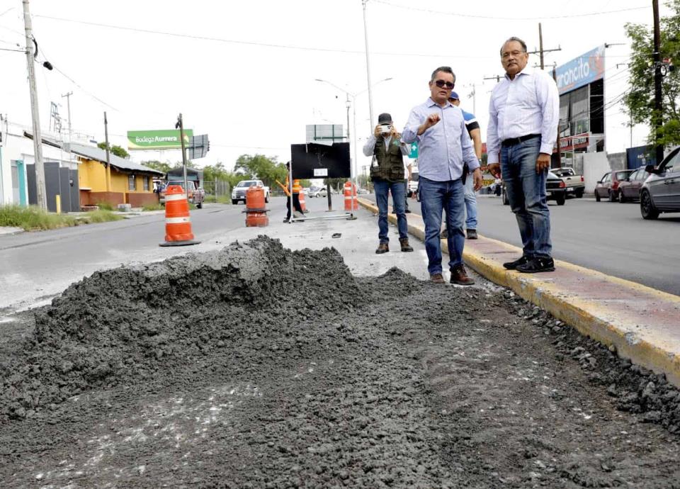 El Alcalde del Municipio de Escobedo, Andrés Mijes Llovera, acudió a supervisar los trabajos de rehabilitación de pavimento de la avenida Juárez, casi en su cruce con avenida Manuel L. Barragán.