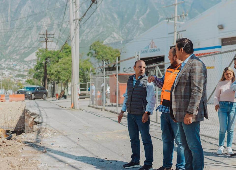 El alcalde del municipio de Santa Catarina, Jesús Nava Rivera supervisó las obras de drenaje pluvial que se llevan acabo sobre la avenida Primero de Mayo.