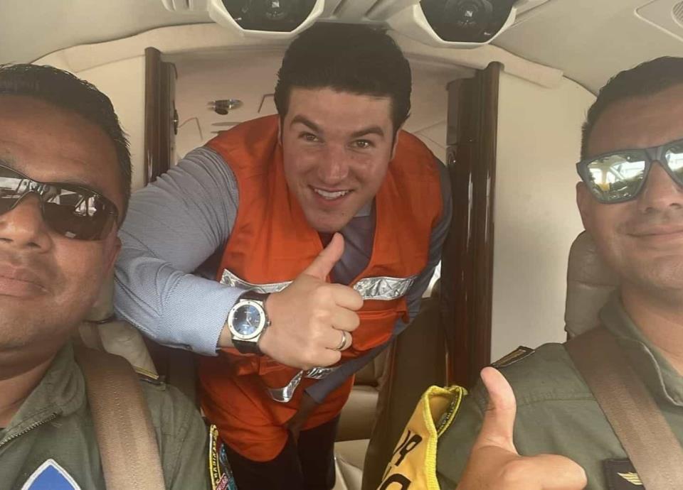 Antes del mediodía, el mandatario estatal se trasladó a la Base Aérea N.14 de la Fuerza Aérea Mexicana, en el municipio de Apodaca, de donde partió la aeronave en busca de nubosidad.