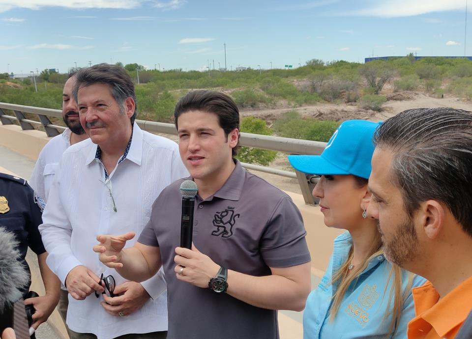 Acompañado de Juan Carlos Mendoza, Cónsul General de México en Laredo, Texas; Alma Rosa Marroquín, Secretaria de Salud; y de Marco González, Secretario de Desarrollo Regional y Agropecuario, subió al autobús en el que se traslada a los menores para su vacunación.