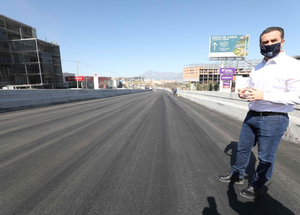 Tras iniciar su construcción el pasado mes de mayo, el nuevo puente sobre la avenida Paseo de los Leones y Cumbres Élite, cuenta actualmente con un avance general del 85 por ciento en su mano de obra, por lo que el Alcalde, Adrián de la Garza, anticipa que pueda estar listo para operar a partir del 15 de noviembre.