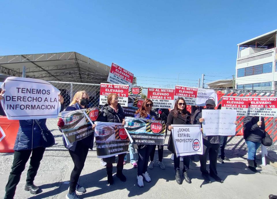 Con pancartas en mano, habitantes de colonias aledañas a la Avenida Miguel Alemán se manifestaron contra el viaducto elevado