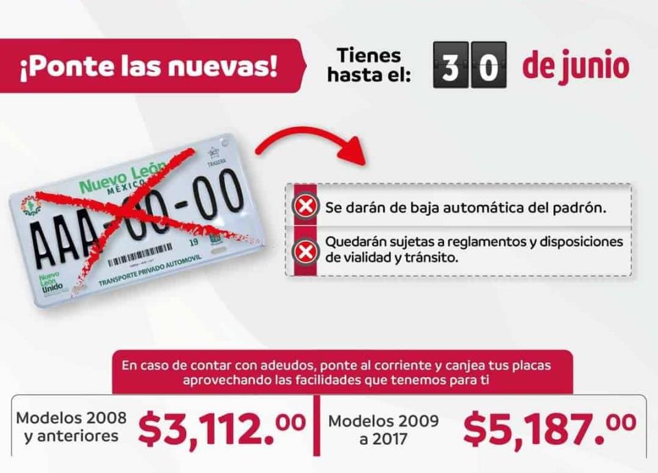 Las placas con la leyenda "Nuevo León Unido" perderán vigencia a partir del próximo sábado 1 de julio.