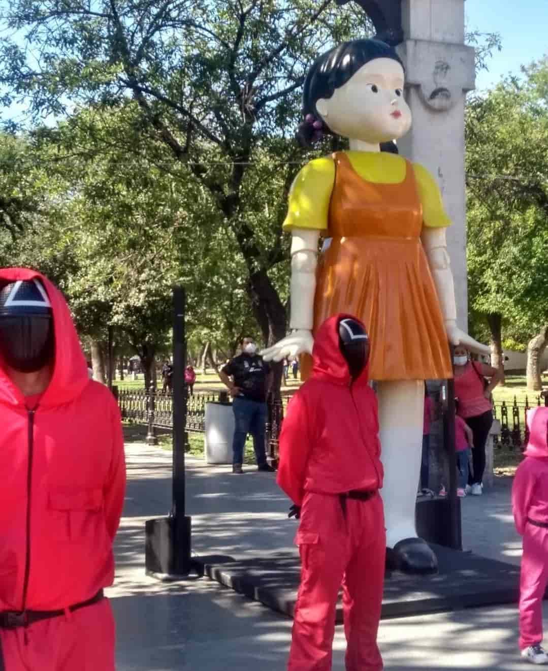 La famosa serie de Netflix llamada “El Juego del Calamar” ha sido sensación en todo el mundo al grado de ser la serie más vista y popular del momento, ante esto, en la ciudad de Monterrey, los regiomontanos podrán tomarse la fotografía con la muñeca del primer capítulo de la serie en la Alameda Mariano Escobedo.