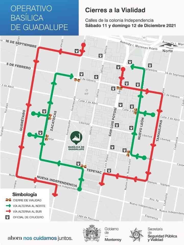En el marco de los festejos a la Virgen de Guadalupe, el municipio de Monterrey implementó cierres en vialidades aledañas al Santuario de “La Morenita del Tepeyac”.