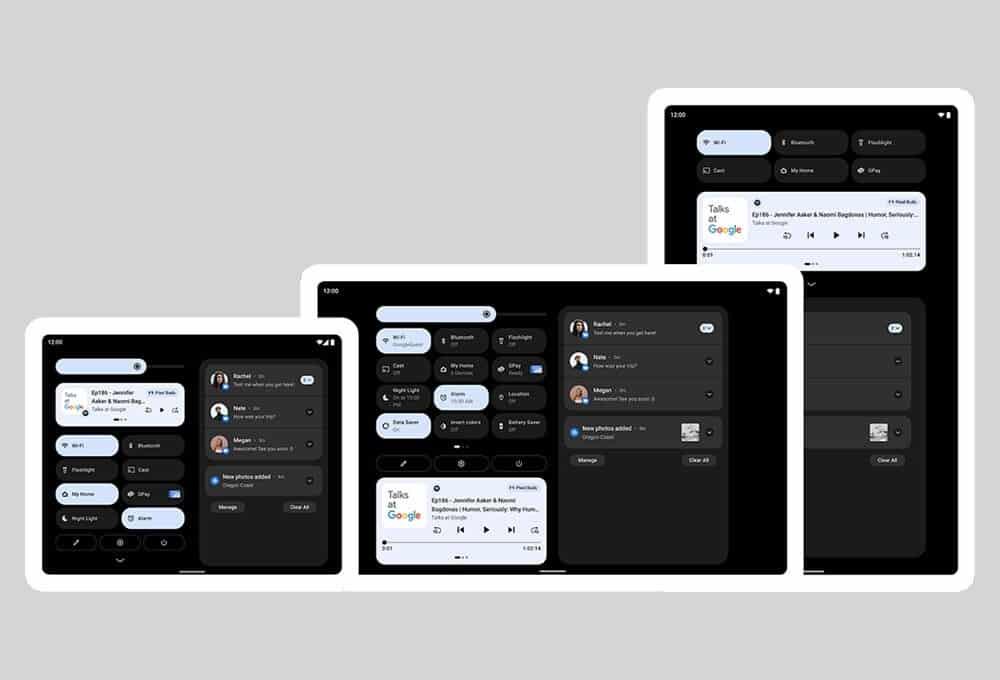 Con la primera beta de Android 12L los desarrolladores y los pocos dispositivos compatibles podrán disfrutar de la nueva experiencia de usuario que ofrece la nueva interfaz adaptada a pantallas grandes, como el nuevo diseño a dos columnas que se mostrará en pantallas de más de 600dp para los ajustes rápidos y notificaciones o la pantalla de bloqueo, además de otros cambios en la interfaz para la pantalla de inicio y más.