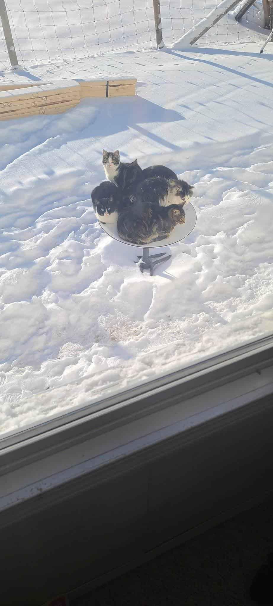 “Tienen acceso a la casa en la que hay calefacción y pueden entrar y salir libremente. Si están ahí es porque quieren”, relataba en Twitter a los usuarios preocupados por los animales. “Ocurre cada vez que sale el Sol independientemente de la temperatura que haga fuera. Mi sospecha es que les gusta porque el Sol les calienta por arriba, y la parabólica por abajo”.