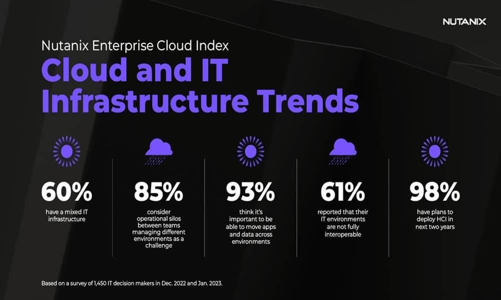 Nutanix, conocedora de la situación tan compleja que atraviesa el tejido empresarial al disponer de varios tipos de infraestructura TI, determina que lo ideal sería una única plataforma, suprimiendo la pluralidad de nubes públicas o privadas o centros de datos locales. Es una conclusión obtenida de los casi 1.500 encuestados de diferentes industrias repartidas por zonas de Asía Pacífico y Japón (APJ), Europa, Medio Oriente y África (EMEA) y América.