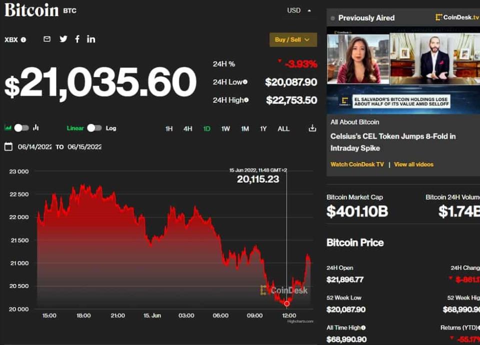 No hay que ser un experto para ver dónde está el problema, la alta volatilidad del Bitcoin, y de las criptodivisas en general, ha mostrado su peor cara, y se ha llevado por delante más de dos tercios del valor de dicha criptodivisa. Para entender mejor la gravedad de esto basta con un sencillo ejemplo, una persona que comprara 10 Bitcoins a su precio pico, 69.000 dólares, invirtió 690.000 dólares y perdió, en poco más de seis meses, 490.000 dólares. Al momento de escribir este artículo, el Bitcoin arrastraba una fase de inestabilidad muy marcada, y tras superar ligeramente los 22.000 dólares volvió a bajar a los 21.183 dólares.