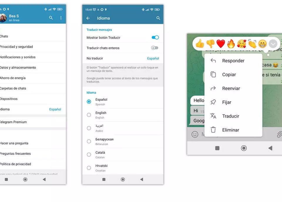 Telegram cuenta con una herramienta de traducción que no tiene nada que envidiar al traductor de Google.
