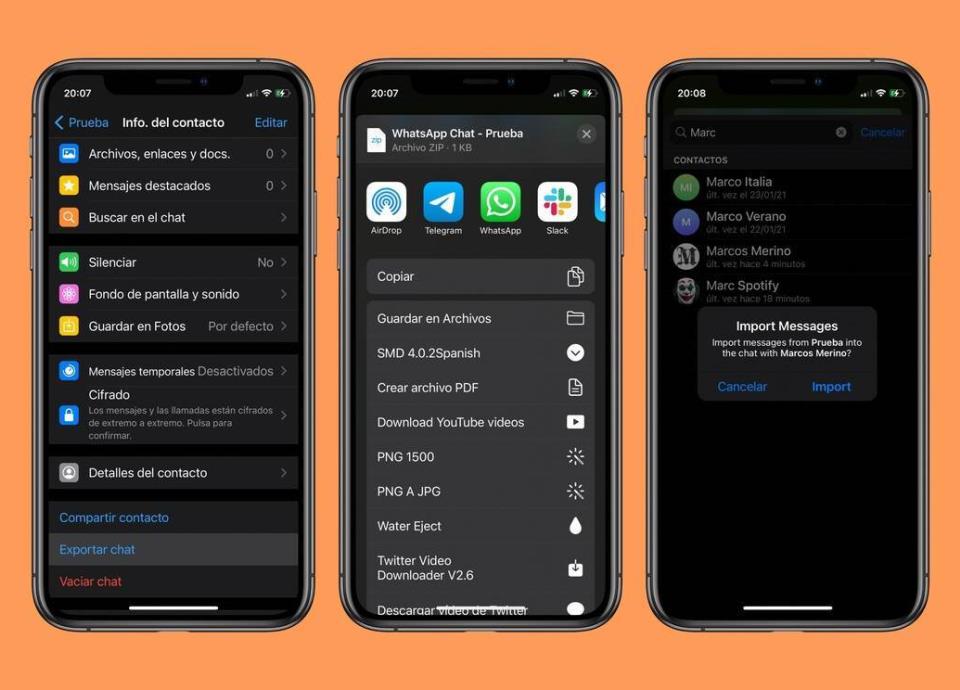Los pasos para importar las conversaciones son relativamente sencillo. Si la importamos de WhatsApp por ejemplo lo que tenemos que hacer es: