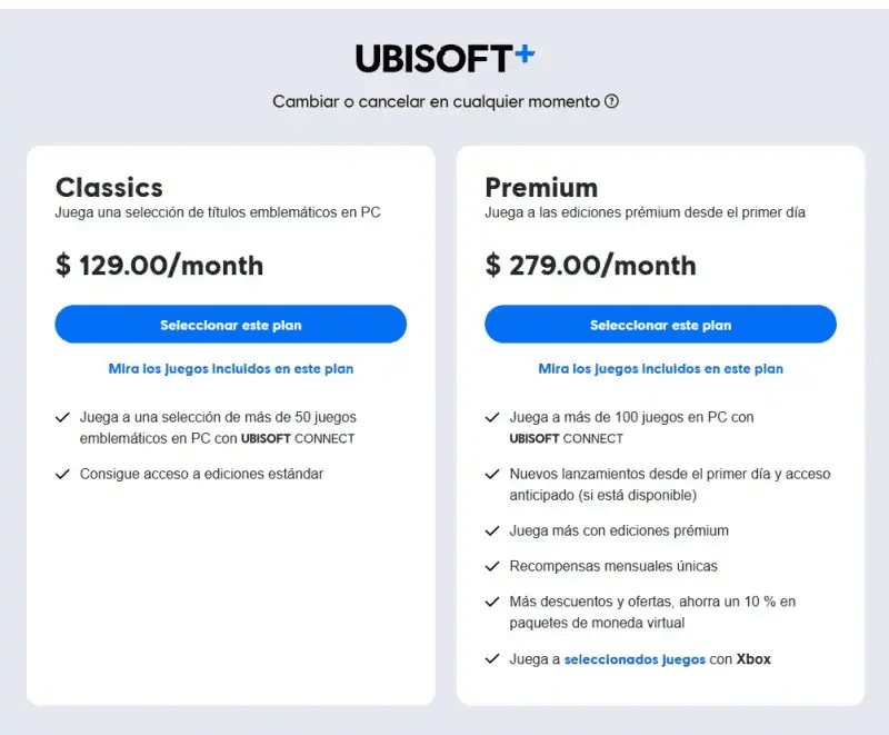 En su lugar ahora ofrece Ubisoft+ Classics, una selección curada de 50 juegos. Esta membresía tendrá un coste de 7,99 euros / 129 pesos mexicanos al mes e incluye ediciones estándar de juegos clásicos y franquicias populares que se podrán jugar a través de Ubisoft Connect. Los usuarios de PC pagarán casi la mitad del plan anterior, aunque con ello se perderán los juegos de lanzamiento.