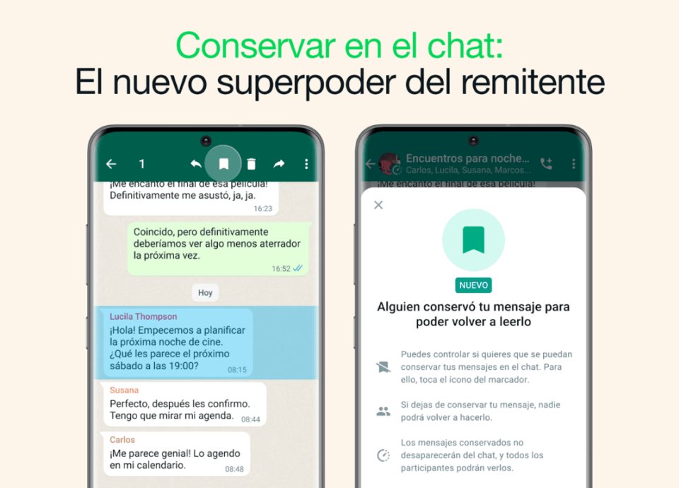 Así funciona "Conservar en chat" para mantener datos importantes.