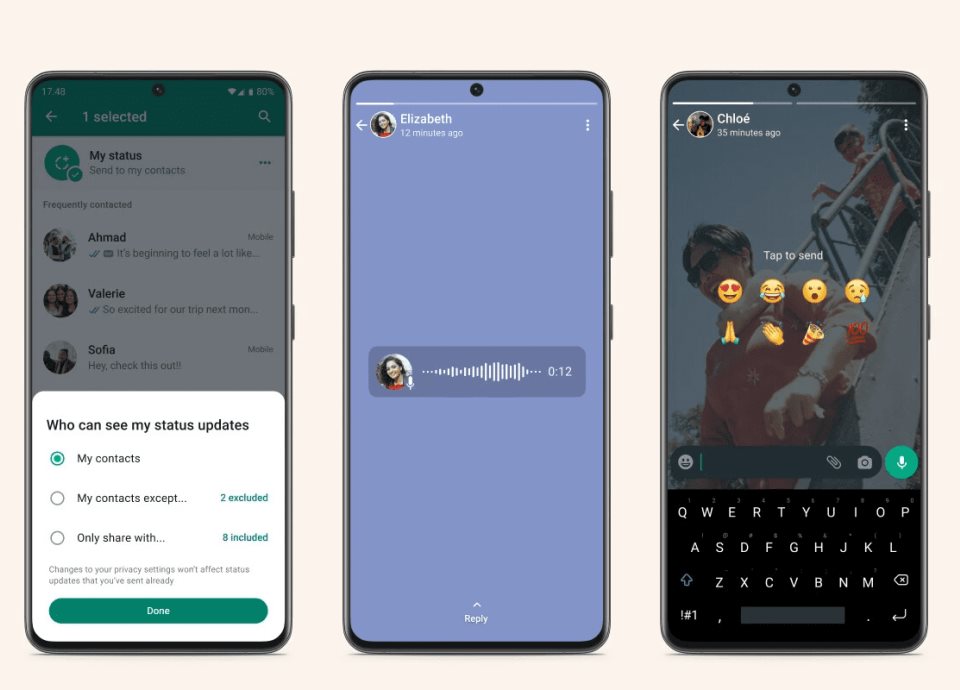 Estas novedades, que llevan ya meses en despliegue pero que ahora finalmente se activarán para todos son las siguientes: el selector de audiencia para estados, los aros en la lista de chats, los estados de voz, las reacciones a estados y la previsualización de enlaces.