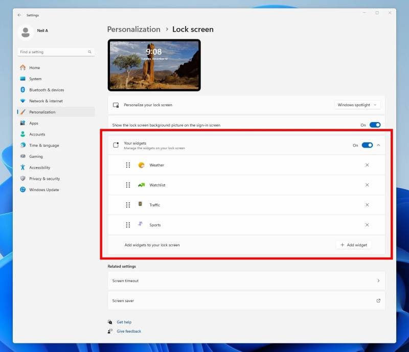 La nueva beta de Windows 11 incluye una opción para añadir y organizar tus widgets favoritos en la pantalla de bloqueo.