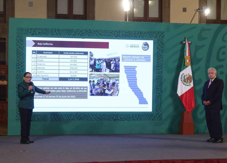 , informó que al día de hoy se han vacunado en los municipios fronterizos con Estados Unidos a un millón 453 mil 577 personas contra el Covid-19, lo que representa el 50% de la población total de estos municipios.