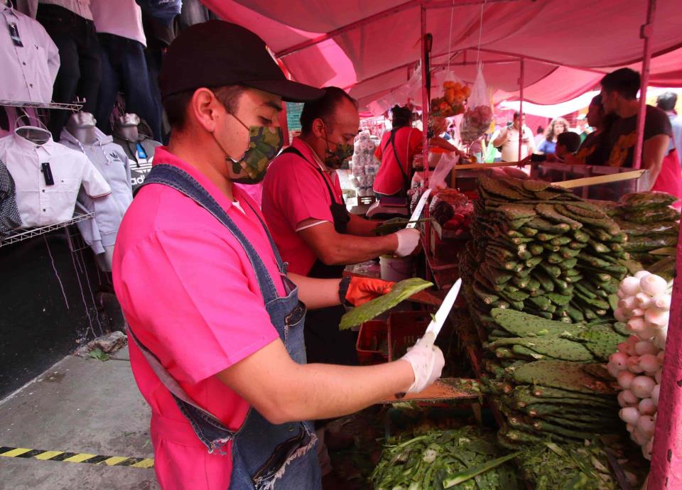 Empero, los cajeros no usan cubrebocas ni guantes. El intercambio de dinero fluye y no cesa.