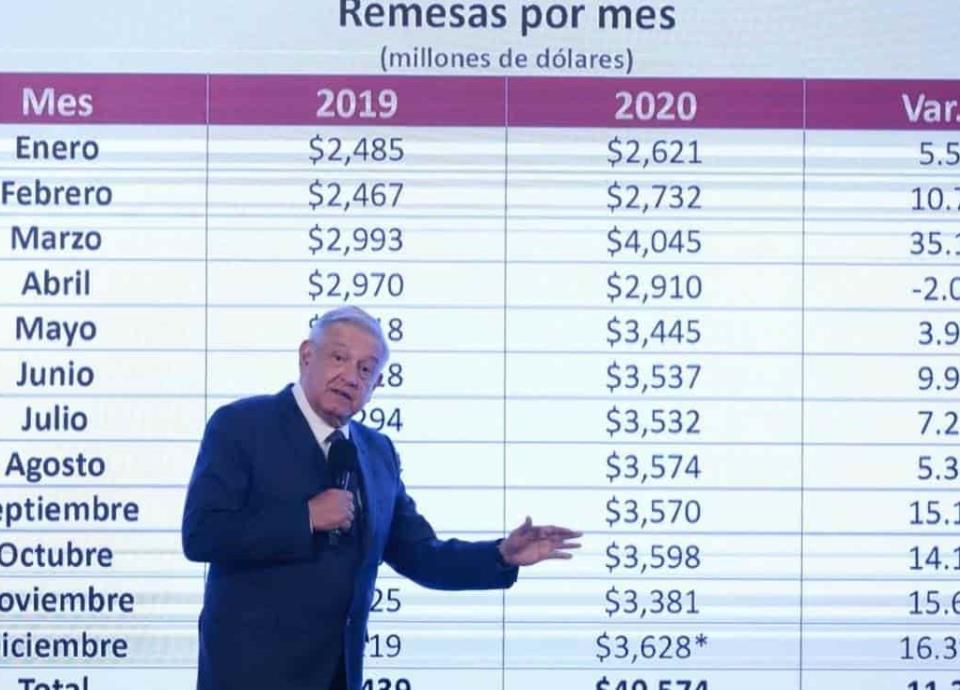"Los paisanos migrantes actuaron como héroes, heroínas el equivalente a los médicos y a las enfermeras que están salvando vidas. Esto en lo terreno económico, porque estamos ya en una cifra récord de acuerdo a los datos hasta noviembre, pero la estimación para diciembre, vamos a recibir los 40 mil millones de dólares, de remesas", dijo.