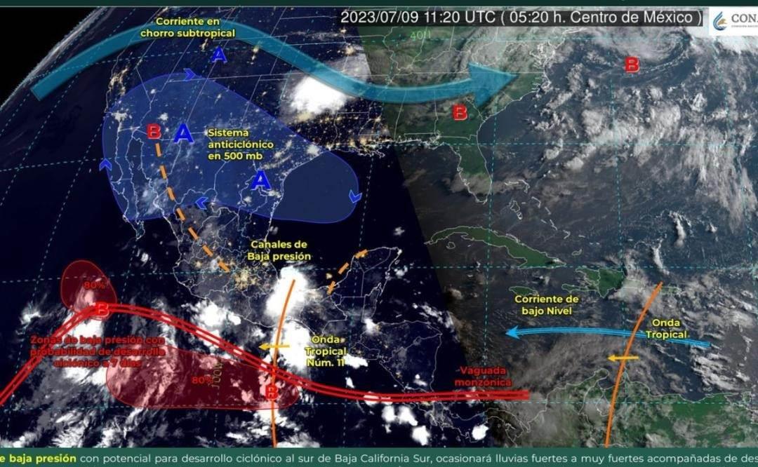 Al sur de las costas oaxaqueñas se podría generar un desarrollo ciclónico durante las próximas 24 horas debido a la zona de inestabilidad junto con un canal de baja presión que continúa al sur del país.