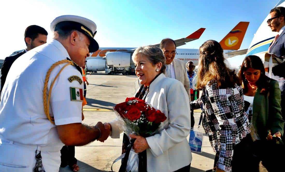 En representación del presidente Andrés Manuel López Obrador, Alicia Bárcena es recibida por el mandatario cubano, Miguel Díaz-Canel, y por el canciller Bruno Rodríguez, en el Palacio de las Convenciones de La Habana.