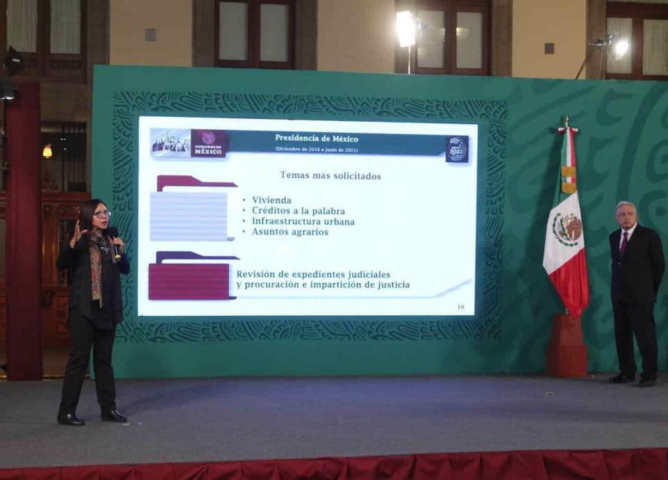 En conferencia de prensa matutina del presidente López Obrador, la titular de Atención Ciudadana detalló que los temas que más solicitan son vivienda, créditos a la palabra, infraestructura urbana, y asuntos agrarios, pero señaló que también se reciben felicitaciones al Presidente.