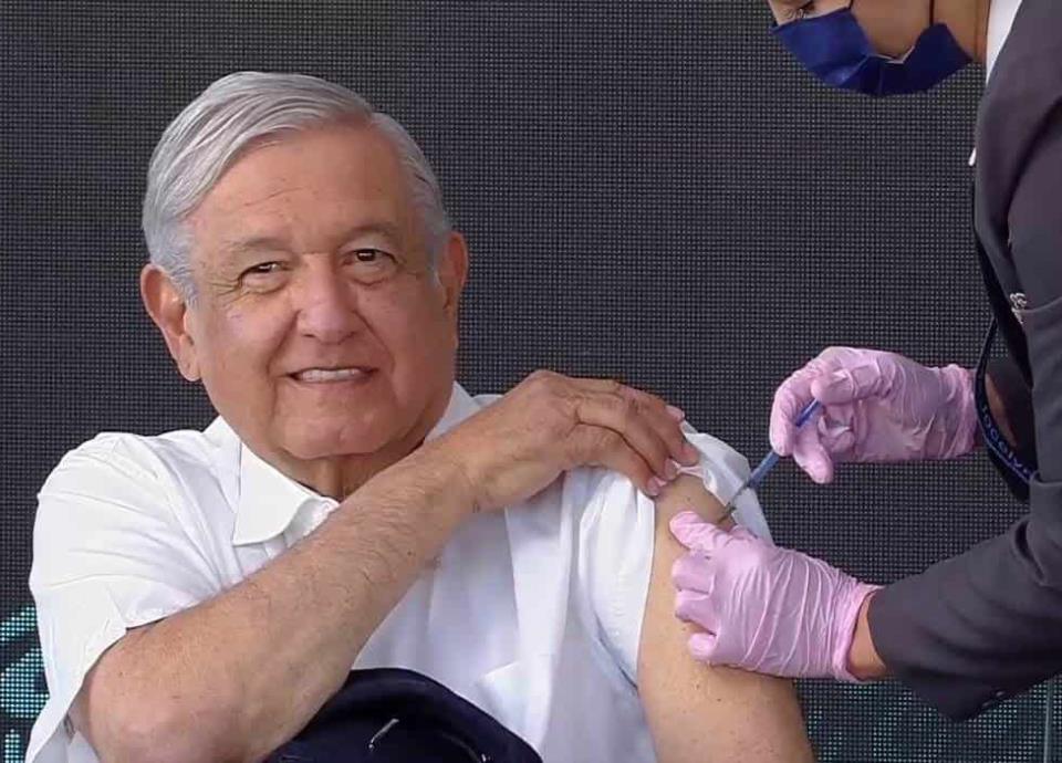 "Ya saben quien", dijo el presidente antes de caminar a la silla en la que tomaría asiento a fin de que una enfermera le aplicara el antígeno.