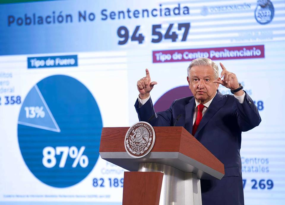 Acompañado por Olga Sánchez Cordero, titular de Secretaría de Gobernación (Segob), y por el subsecretario de Derechos Humanos, Alejandro Encinas, el Mandatario federal reclamó que hay miles de presos, tanto del fuero común como del federal, sin sentencia, pese a que, indicó, la justicia debe ser expedita.