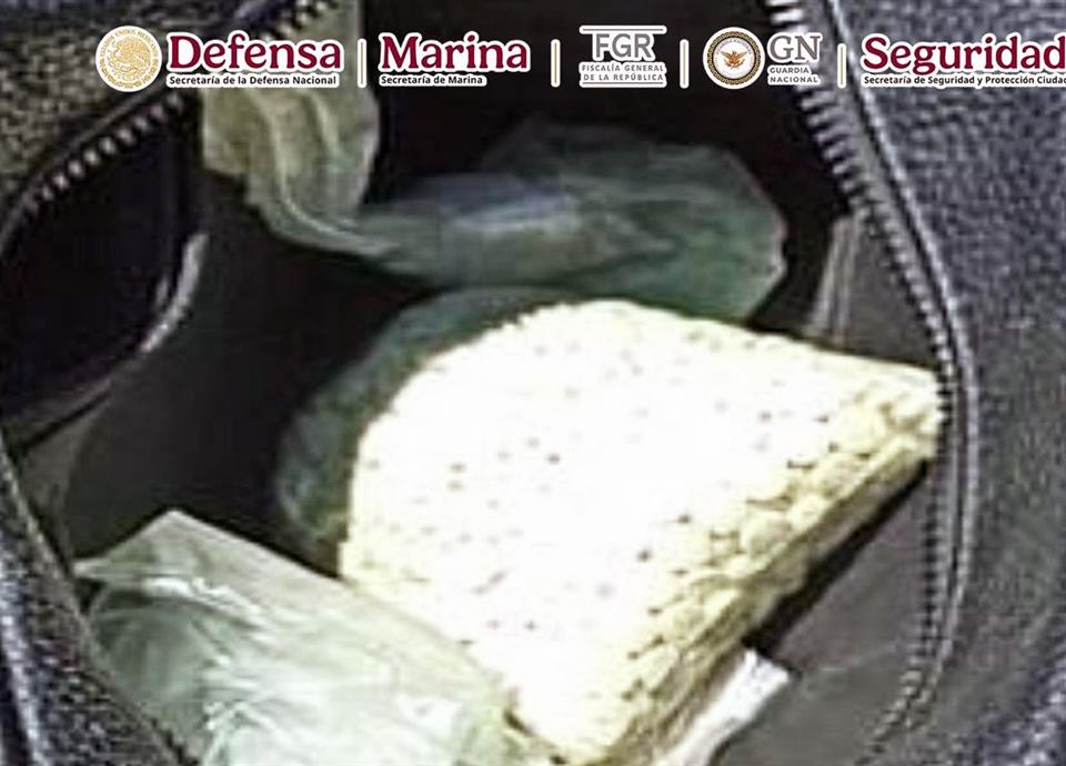 Durante la revisión, los elementos localizaron las más de 100 mil pastillas de fentanilo que permanecían al interior de una mochila sujeta a la unidad.