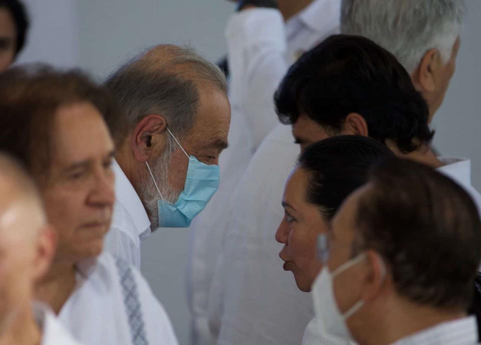 Además se encuentra el empresario Carlos Slim, presidente del Grupo Carso; Francisco Cervantes, presidente del Consejo Coordinador Empresarial (CCE); así como Daniel Chavez, del Grupo Vidanta y supervisor honorario de avance del Tren Maya.