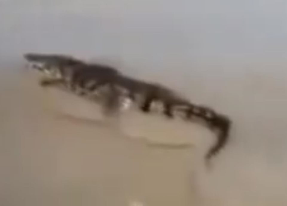Cocodrilo de gran tamaño es visto en Barra del Tordo, Tamaulipas