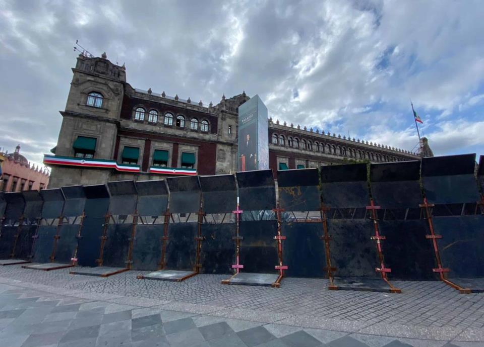 CIUDAD DE MÉXICO,- Docenas de militares y elementos de la Secretaría de Seguridad Ciudadana de la Ciudad de México refuerzan la seguridad de Palacio Nacional a unas horas de que inicie la manifestación por el octavo aniversario de la desaparición de los 43 estudiantes normalistas de Ayotzinapa.