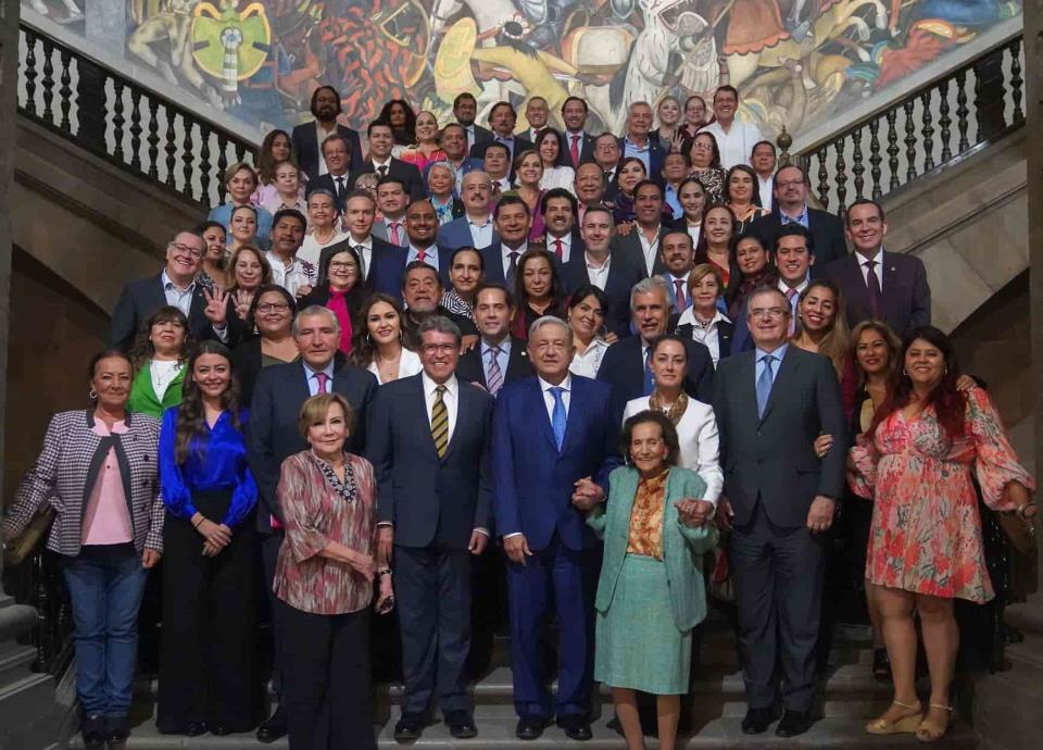 El presidente de México, Andrés Manuel López Obrador se reunió con senadores de su partido Morena y aliados y con los llamados "corcholatas" presidenciables en Palacio Nacional.